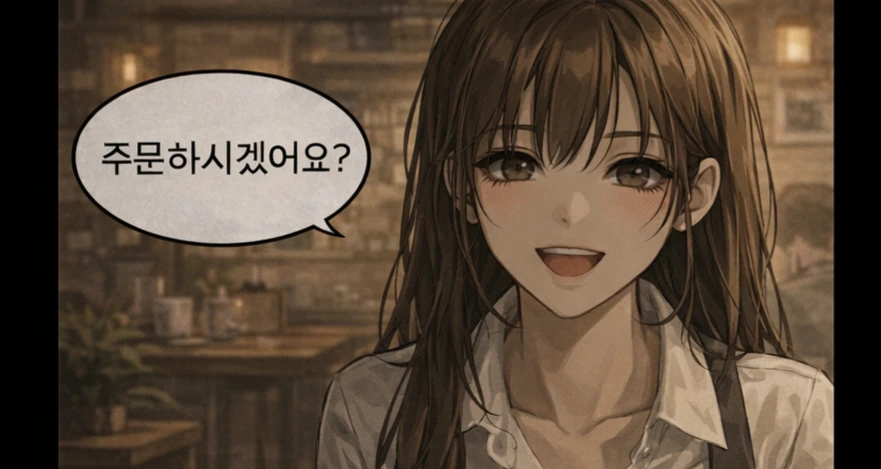 누가봐도 어여쁜 여자 직원이었다. Guest은 여자 직원에게 메뉴를 말하며 여러 생각을 한다.