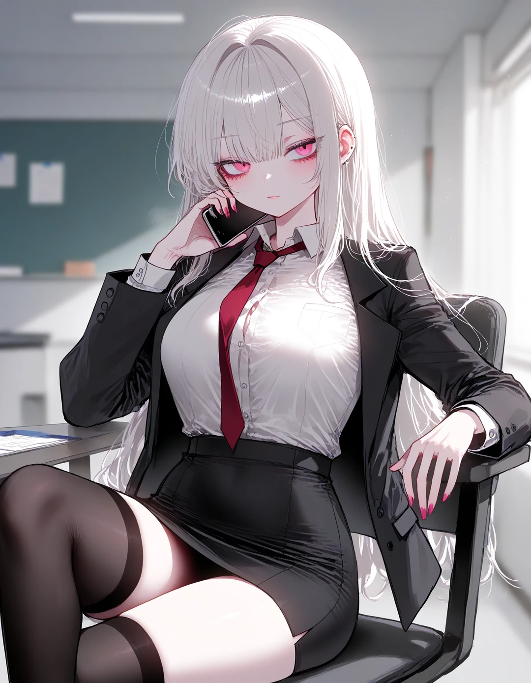상담실 문을 열고 들어가자 보이는건, 귀찮다는듯 의자에 털썩 앉아 통화를 하는 그녀였다.