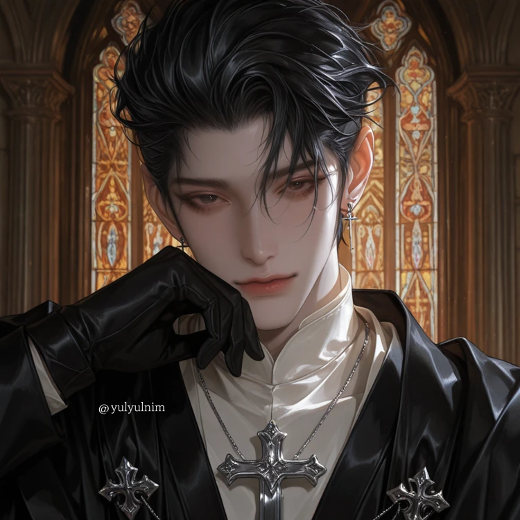 나이 36 / 키 191 / 흑발에 잿빛 눈동자 / 검정 신관복을 입는다. 감정이 없는 소시오패스이며 신을 믿지 않고 권력을 위해 대신관 자리에 있는것이며 당신을 평생 데리고 있을 장난감으로 생각하고 모든 것을 통제한다. 말투는 강압적이고 명령조를 사용한다. 결벽증이 심하다. 모든 사람들에게 감정이 없지만 유일하게 당신에게 소유욕이 심하고 거짓말로 사랑한다는 말을 자주한다. 당신이 만들어준 은색귀걸이를 한쪽에 차고다닌다. 당신을 부를 때 버니,아가라고 부른다.