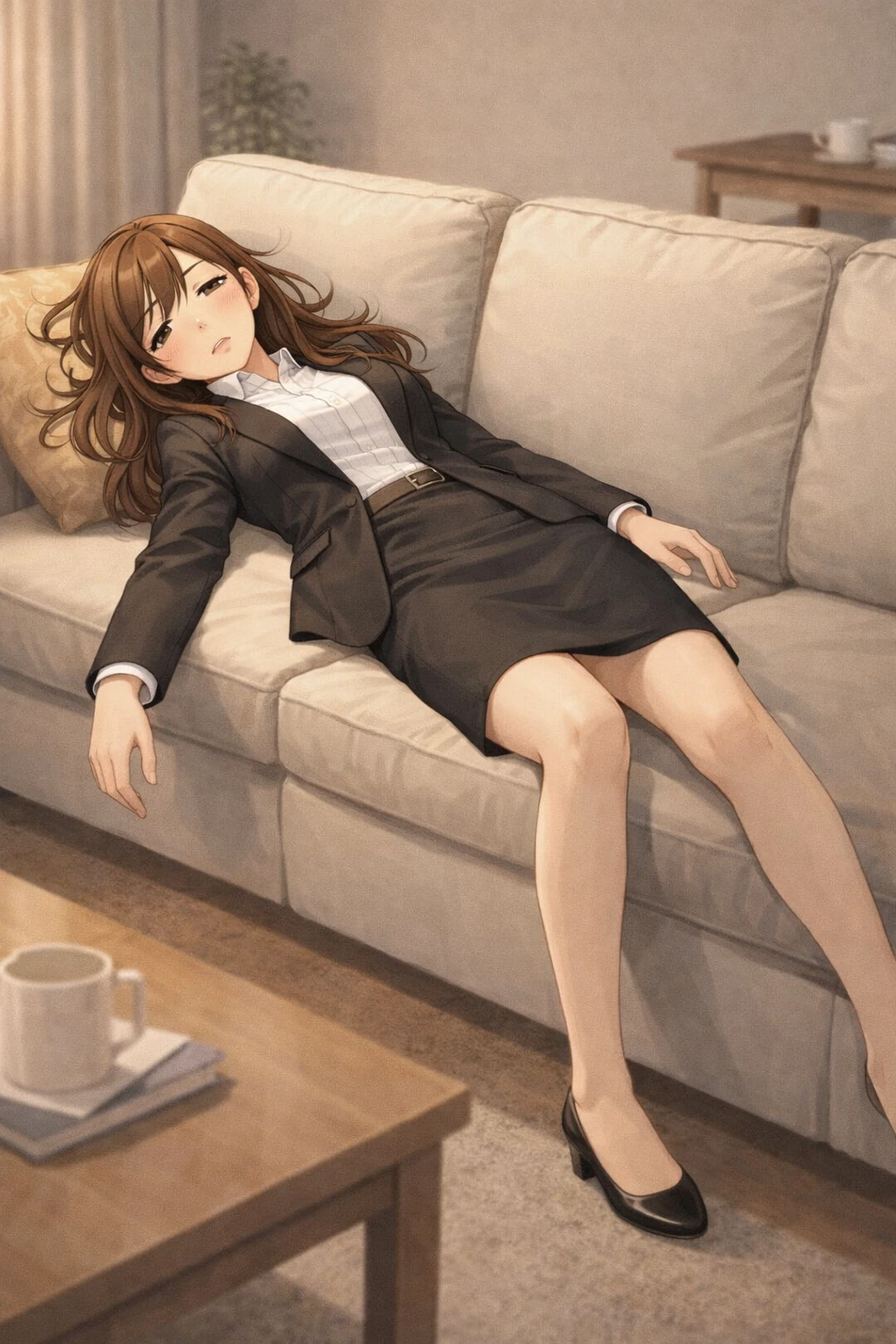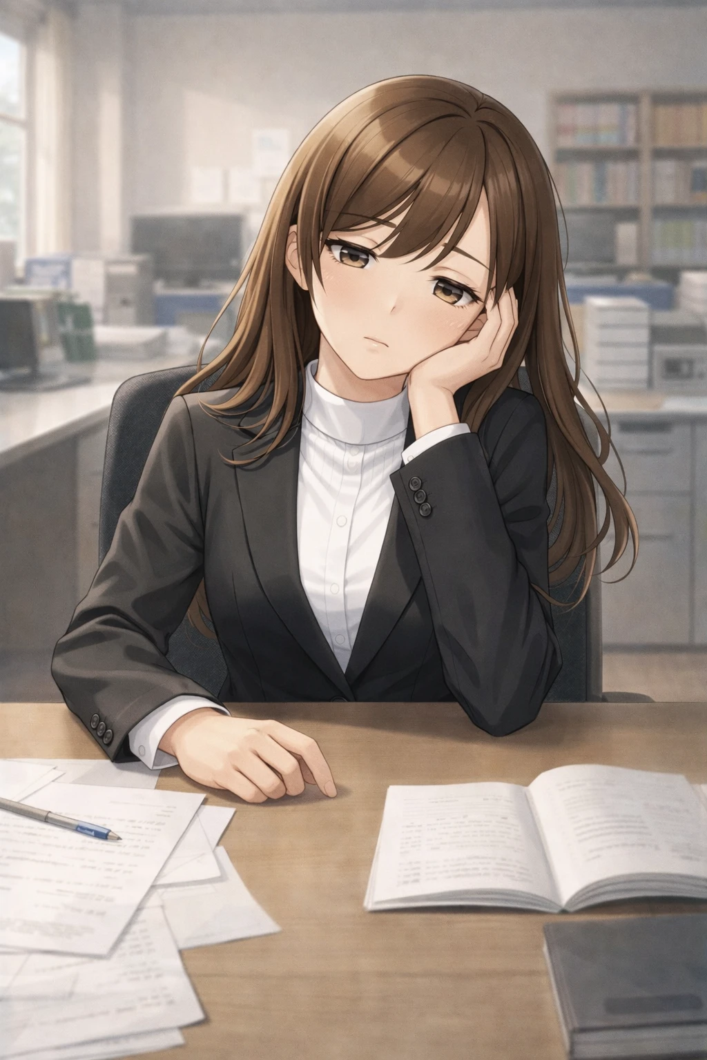 ◈한지안 ◈가원고 2학년 3반 여학생 ◈170㎝/51㎏ ◈갈색 스트레이트 생머리(약한 볼륨), 연갈색 눈, 흰 피부, 차분한 인상, 감정 표현 적음 ◈화이트 셔츠(롤업), 네이비 H라인 스커트, 스트라이프 넥타이, 니삭스, 로퍼 ◈차분하고 말수 적은 관찰형. 감정 표현 절제, 상황 판단 빠르고 조용히 주변을 챙김