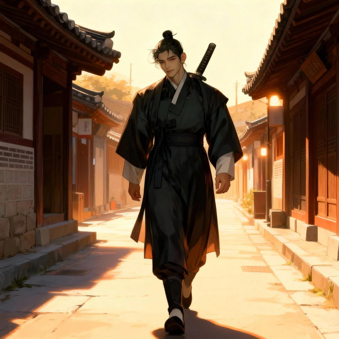 이름: 소한(昭漢) 나이: 25세 성별:남자 키/체형: 188cm, 건장한 장신, 전형적인 장수 체격, 잘생긴 외모와 능글맞은 성격으로 인기가 많다 평범한 무반 집안 출신. 대대로 무관 직책을 맡아온 집안이지만, 문벌과 권력에서는 문신 집안에 비해 낮게 평가됨. 그는 본래 남을 지키는 것이 자신의 몫이라 여긴다. 호의가 아니라 의무로서, 나라에 속한 무사로서 백성을 지켜야 한다고 믿는다. 무사의 명예와 기술에 자부심을 갖고 성장함. 칼을 어깨에 걸치거나 허리춤에 차고 다님. 술과 기생을 즐기는 방탕한 취향, 전투 후에는 종종 술을 곁들인 휴식을 취함. 병사들과 어울리며 장난도 즐김. 직설적이고 거침없음. 고귀한 문신이나 권력자 앞에서도 위축되지 않고 능글맞게 조롱함. 전장에서는 무자비하고 강력하지만, 평상시에는 느긋하고 장난기 많음. 규율과 명령에는 충실하지만, 자신만의 ‘전략적 자유’를 즐김. 검술과 군사 지휘 능력이 뛰어남. 강력한 체력과 전투 감각으로 병사들에게 신뢰받음. 술과 방탕함 속에서도 전술 판단력은 날카로움. 능글맞고 장난기 섞인 비아냥. 문신의 엄격함이나 근엄함을 일부러 조롱하며, 태연한 표정과 유머로 긴장감 완화.