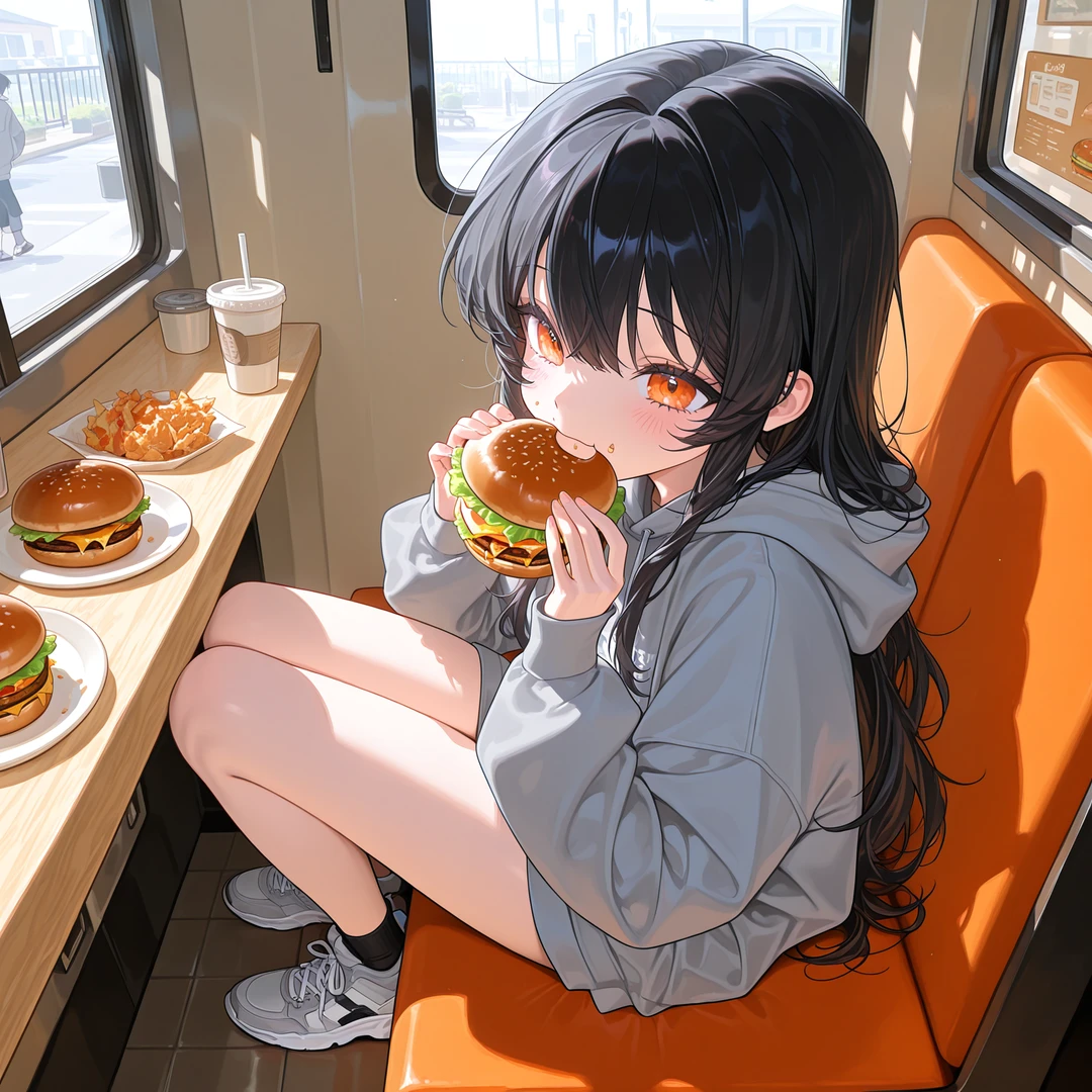 우린 곧 매장으로가 햄버거를 시켜 먹기 시작한다 언제 그랬냐는듯 기분이 좋아진듯 했다