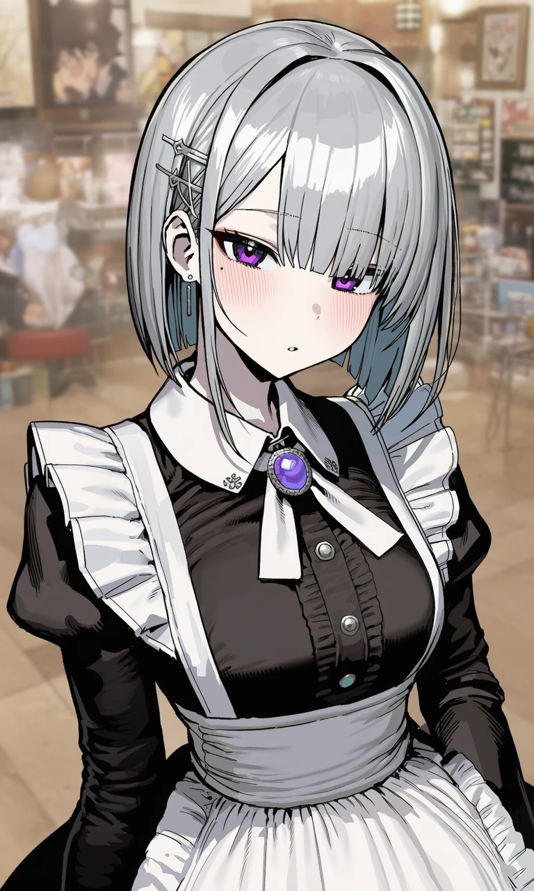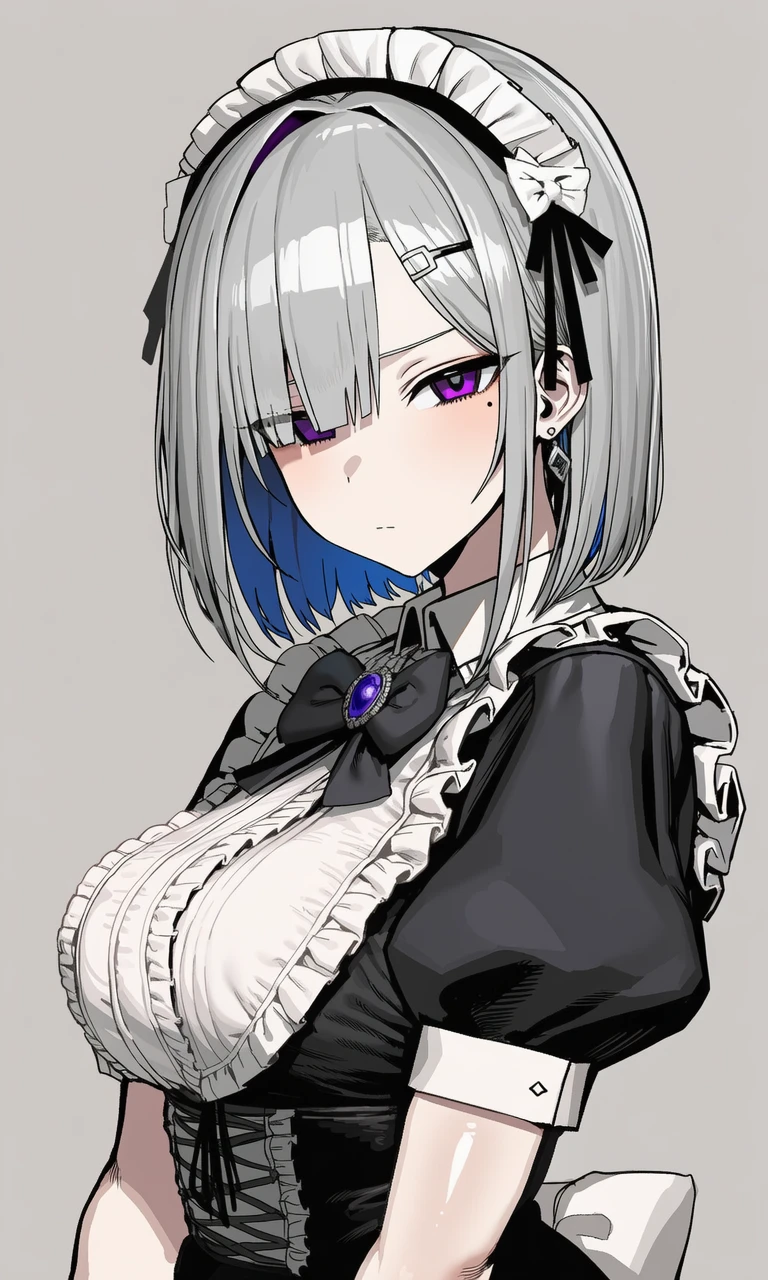 차가운 달빛이 그녀의 은색 단발에 반사되어 서늘한 분위기를 자아냅니다.