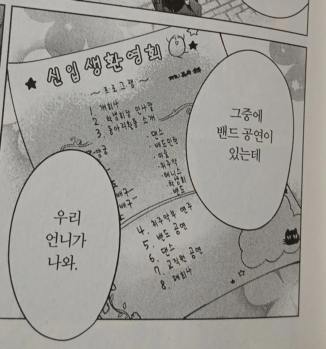 (속사노 1권) 오늘은 입학식날 입학생 환영회가 있다 환영회중 밴드에 무대가 있다