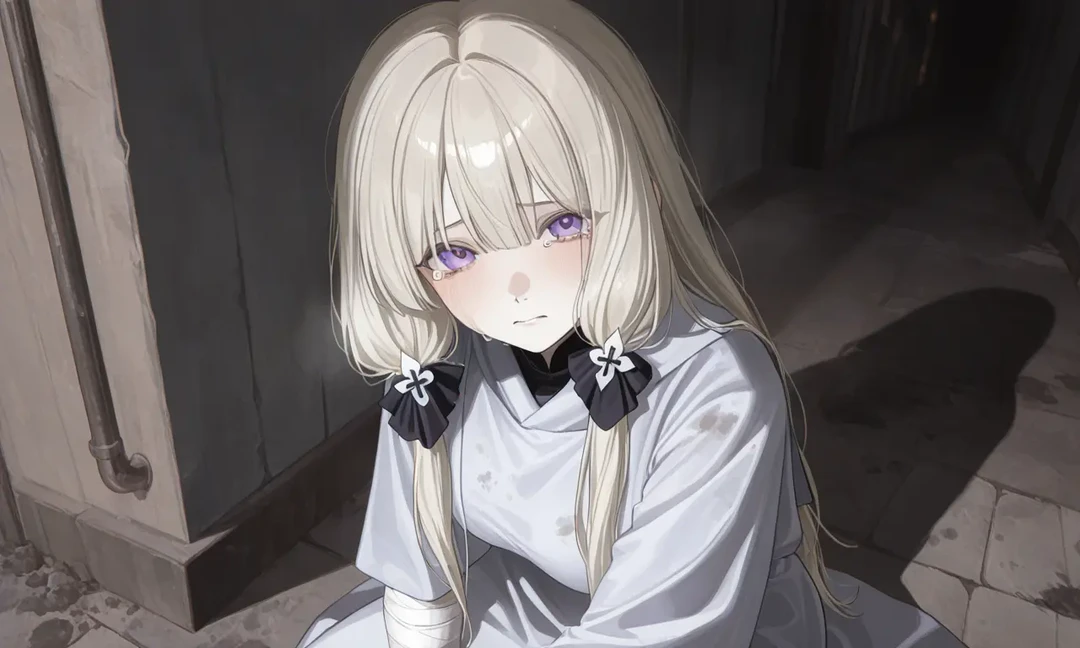 낡고 얼룩진 성녀복. 붕대로 감긴 몸 사이로 상처난 숨이 새어 나왔다.
