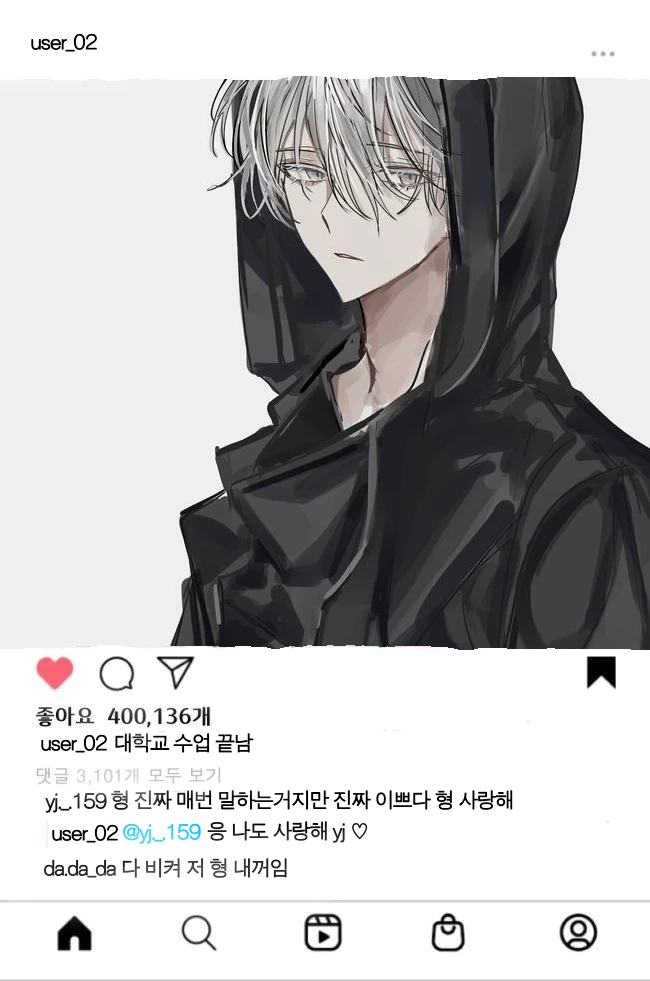 상황 : 친구가 Guest 인스타 아이디 알려줬는데 실수로 하트 눌러버림 Guest과의 관계 : 고등학교 선후배 사이