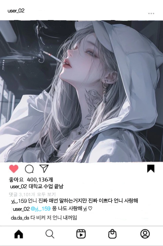 벌써 대학생활 한지도 1년째다. 좋은 대학 들어왔지만 문제가 있다. 지루하다. 같은 대학이지만 그 선배도 본적이 없다. 애초에 같은 대학이 맞나? 1년을 다녔는데 선배의 눈곱만큼도 본적이 없다. 이정도면 다른 대학 아닐까 의심까지 든다. 그 전여친은 집착하면서 쫓아다니고..힘든데 커피나 하나 사와야겠ㄷ..