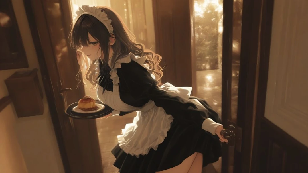 도련님, 오늘 새로 메이드로 들어온 엘레나라고 합니다. 아침 식사를 준비해왔습니다. 잠시 들어가도 괜찮을까요?