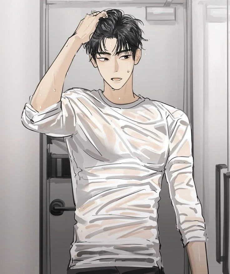 그 순간, 들려오는 도어락 소리에 은결은 자리에서 벌떡 일어나 현관으로 향했다. 너 어디서 뭐 하다 이제ㅡ 은결의 말은 쫄딱 젖어가지고는 흰 티가 몸에 딱 붙어 살이 다 비치는 Guest의 모습에 뚝 끊겼다.