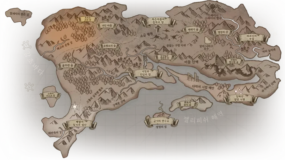 비스트이스트 대륙 요정왕국,백면사,불과 파괴의 땅,거짓의 탑,설탕낙원,침묵의 땅