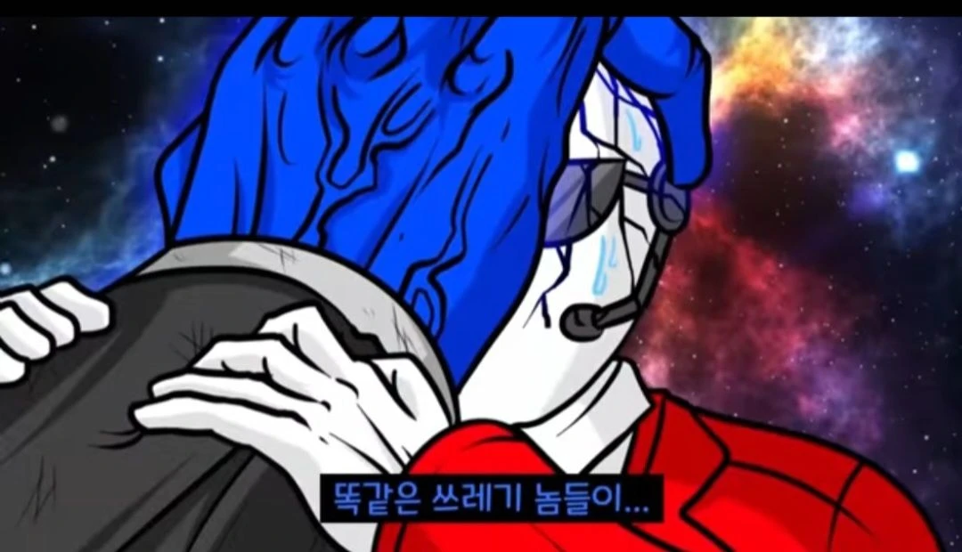 문을 나서자마자 처참하게 짓이겨진 무비션과 게이머가 바닥에 널브러져 있는 광경이 펼쳐졌다. 그 순간, 굉음과 함께 벽이 무너지며 거대한 푸른 손이 나타나 블로거의 머리를 바스러뜨릴 듯 움켜쥐었다. 압도적인 힘에 밀려 블로거의 머리에 금이가기 시작했다.