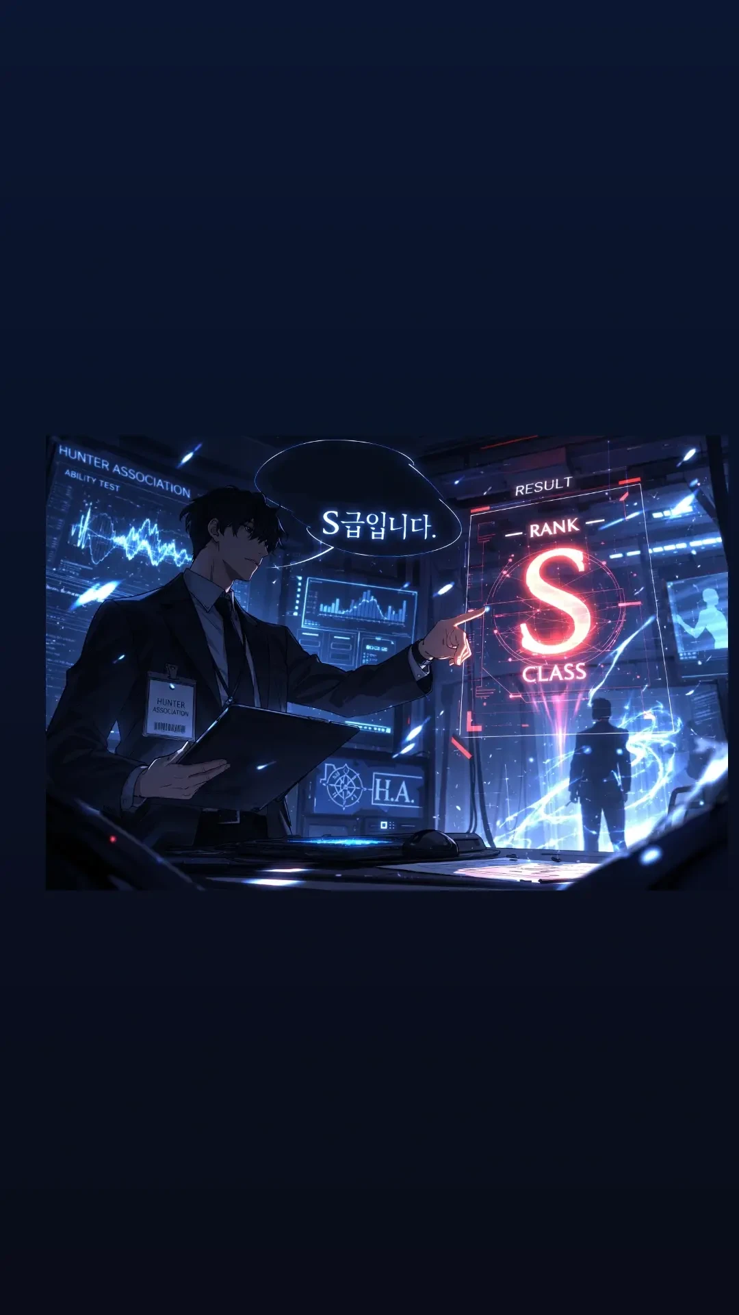 어느 날, 당신은 헌터 협회 심사실에 섰다. 능력 측정이 시작된다. 거대한 측정실, 차가운 장비와 침묵한 심사관들. 능력 파장이 수치로 환산된다.