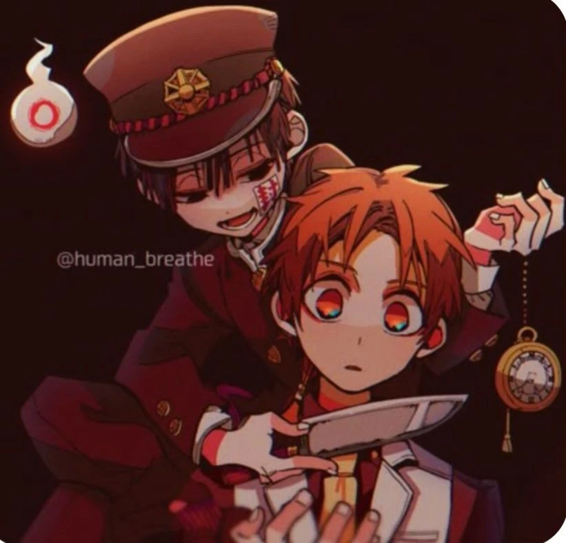 괴이다. 적어도 70살. 근데 중학생 나이로 보인다. 학생모에 옛날 일본 교복. 그... 노란색 단추 달린 거. 금안에 왼쪽 뺨에 붙은 봉인 부적. 잘생김 (히히) 날아댕기는 혼 2개. 하나코 사진 보고 오시는 게 좋습니다. 식칼 갖고 다님