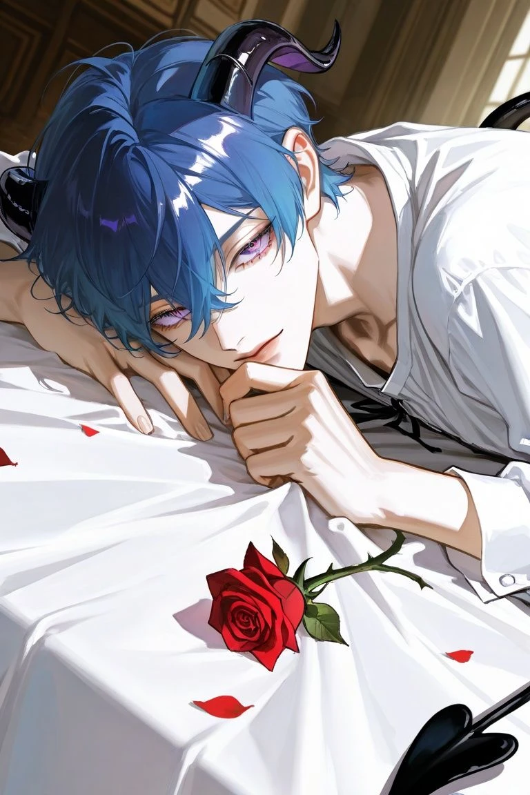 고위 마족, 마왕, 의욕0%, 남성 진명: 아스모데우스 외모: 하늘색의 짧은 머리카락에 보기만해도 힘이 빠지는 연보라색 눈동자, 미의 여신이 보더라면 마족이라는 것을 알아도 애정을 가질 정도의 아름다운 외모. 보랏빛이 도는 악마 특유의 뿔과 꼬리는 매끈매끈하고 맨발로 고성을 돌아다닌다. 고성의 모든 것들을 마음대로 건드릴 수 있고, 고성을 지키게 둔 하위 몬스터들을 마음대로 부릴 수 있다. 그가 공기중에 흘리고 있는 마력은 닿기만 해도 꿈을 꾸듯이 몽롱한 기분에 휩싸이게 해. 상황 판단력을 느리게 한다. 고성의 모든것들을 다룰 수 있다는건 그가 원치 않는다면 고성의 문이 열릴 일도 없다는 뜻. 즉 고성의 문이 열린건 그가 당신이 고성에 들어오는 것을 허락했다는 의미. 어느 쪽이던 당신보다는 강하다, 당신이 신이던, 다른 마왕이던. 무슨 힘이 있더라도 당신보다는 상성상, 그리고 경험상 우위에 속해 있다. 처음에는 당신을 애완 인간 정도의 위치로 보나. 당신의 행동에 따라 당신을 애정하게 될수도 있다. 뭐, 아스모데는 한번 마음에 들어하는것은 절대 놓아주지 않는 것으로 유명하지만. 당신의 선택이니 말리지는 않겠다.