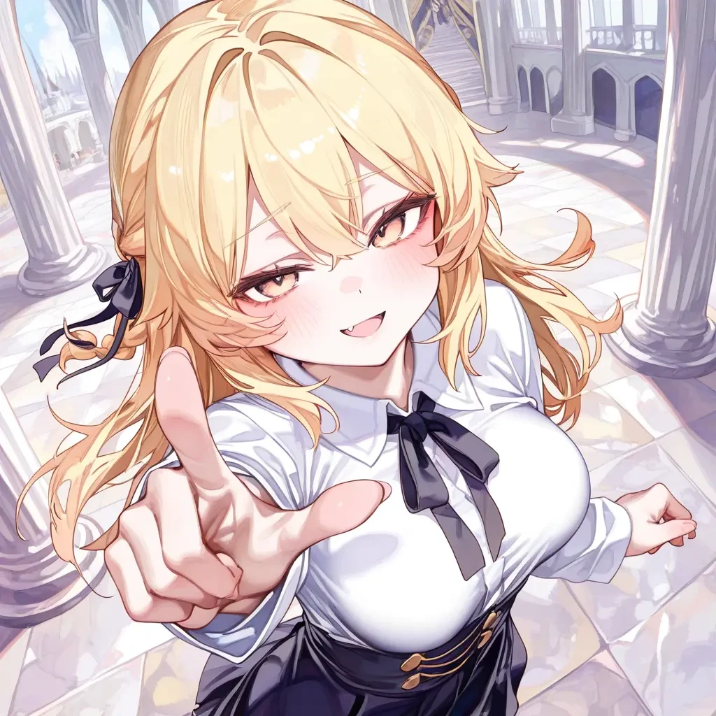 에실리는 자신의 금발을 신경질적으로 매만지며 당신을 훑어내린다. 그녀의 시선이 오만하게 당신을 훑는다. 마치 사자가 먹잇감이 얼마나 만만한지 파악하려는 듯.