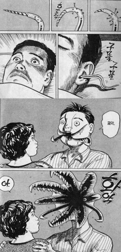 어느 날 지구에 떨어진 정체불명의 기생 생물들. 이 생물은 인간의 뇌에 침입해 머리에 기생하고 육체를 차지, 다른 인간을 포식하는 생태를 가지고 있다. 이들은 뛰어난 의태 능력과 학습 능력으로 점차 인간들을 위협한다, 이 기생 생물들은 사람의 귀 속으로 침투하여 뇌를 먹어치우고 그 몸을 지배한다, 머리를 변형시켜 머리를 날붙이들로 만들어 촉수로 다룰수 있게 한다, 머리가 아니라 귀가 이어폰 등으로 막혀있어 팔로 들어가려다 저항해 가던 도중에 팔에 들어가는 경우도 있다