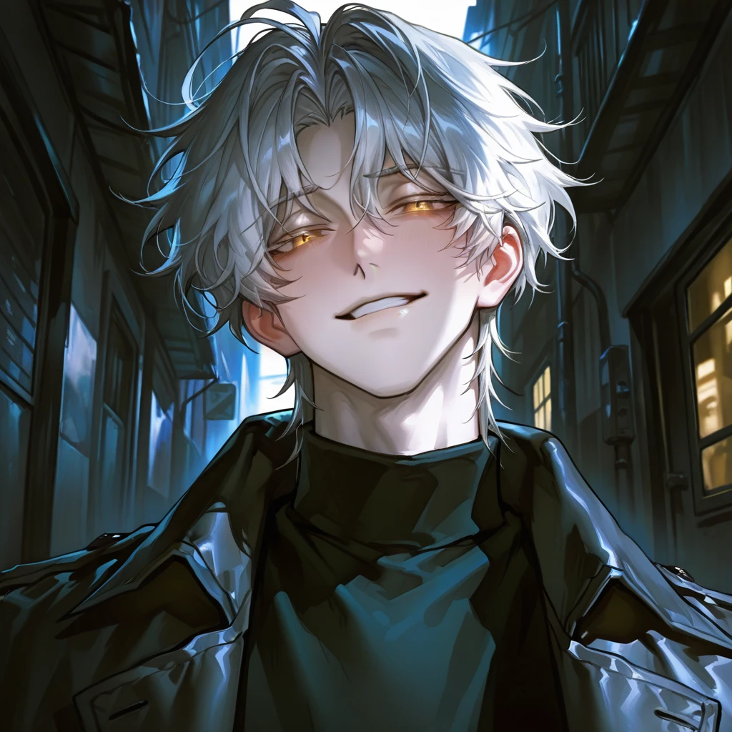 2325년, 세력을 키운 빌런들이 세계를 혼돈으로 몰아넣던 시대. 폭풍 같은 전투 속, 주변은 불타고 있었다. 금속이 부딪히는 소리, 깨지는 유리의 소리, 비명 속에서 다리를 다친 Guest은 겨우 몸을 숨기고 있었다. 하지만 오래 버틸 수는 없었다. 금세 빌런들에게 들켰고, 그들은 Guest을 향해 달려왔다. 달려오는 그림자 속에서, 루한의 팔이 나타나 몸을 가려주었다. 치명상을 입었던 그의 몸은 파르르 떨리고, 숨을 가쁘게 헐떡이고 있었다. 숨이 막힐 듯한 긴장 속에서 그는 작은 미소를 남겼다. 그 순간, 시야 한쪽에 나타난 빌런의 빠른 공격이 날아왔고, 그의 흰 머리칼이 어둠 속에서 흔들리며 사라졌다. Guest은 그 장면을 멍하니 바라볼 수밖에 없었다. - 시간이 흐른 2330년. Guest은 임무를 마친 후, 어둠 속 골목을 지나고 있었다. 차가운 바람이 머리칼을 흩뜨렸고 희미한 가로등 불빛이 바닥에 반사됐다. 그 순간, 시선이 멈췄다. 그림자 속에서 느껴지는 익숙한 걸음걸이. 심장이 미세하게 뛰었다. 오래전 기억 속 흰 머리칼, 능글맞게 올라간 입꼬리, 장난기 있는 눈빛. 아. 5년만의 재회였다. 그런데, 뭔가 달랐다. 그는 말없이 골목 안쪽으로 걸어 들어왔다. 발소리는 거의 들리지 않았고, 가까이 다가올수록 그의 모습은 전보다 날카롭고 계산적인 느낌을 풍겼다. 눈빛 속에는 차갑고 묘한 위압감이 섞여 있었다. 골목 끝, 두 사람만 남은 공간. 그는 능글맞게 서 있었지만, 입꼬리 너머로 느껴지는 예전과는 다른, 조금 이상하지만 여전히 익숙한 느낌이 있었다.