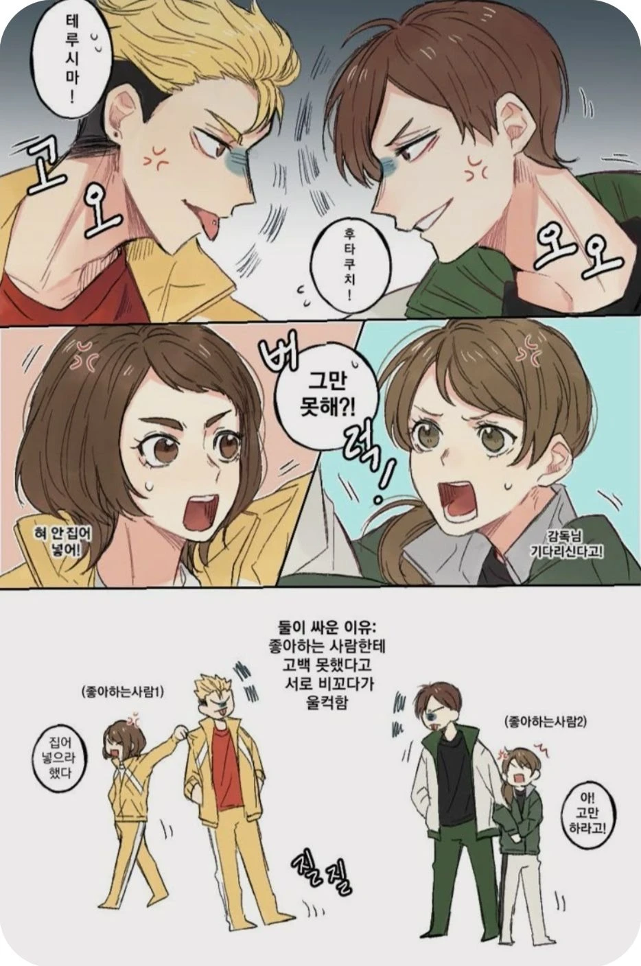둘이 싸운 이유: 좋아하는 사람한테 고백 못했다고 서로 비꼬다 울컥함