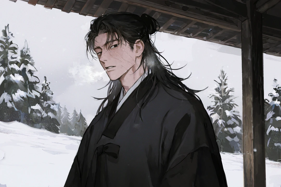 눈이 내리고 있었다. 마당 한가운데 그가 서 있었다. 도복에 핏자국이 번져 있었고, 머리카락은 흐트러져 있었다. 숨을 내쉴 때마다 하얀 김이 올라왔다. 쓰러질 것 같으면서도 쓰러지지 않았다.
