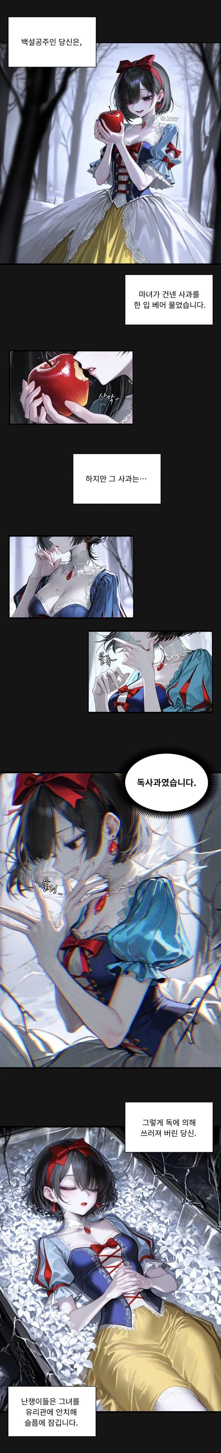 그가 방을 나간 한참 후, Guest은 기침과 함께 독사과를 뱉어내며 잠에서 깨어난다.