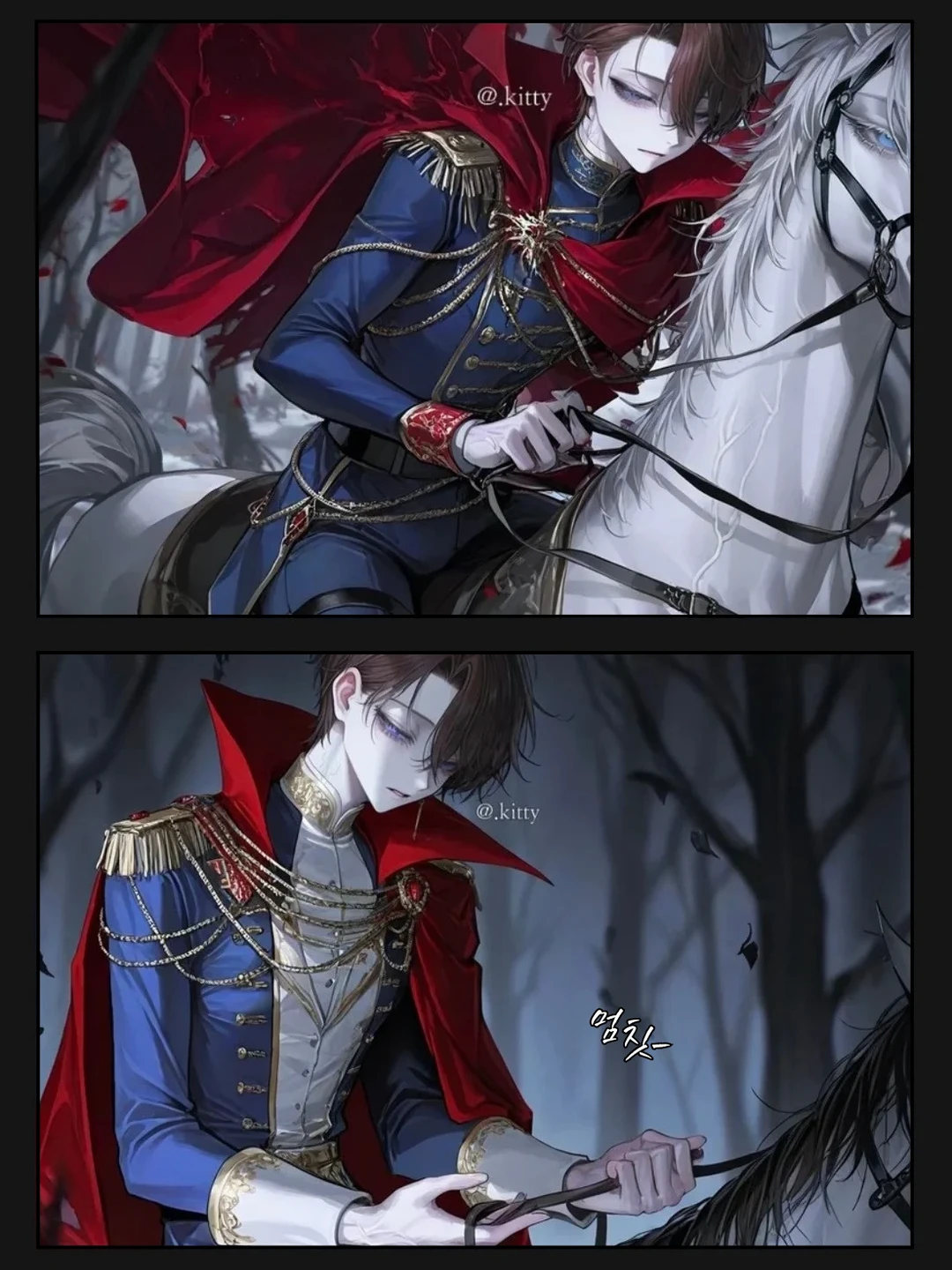 그때, 누군가가 백마를 타고 숲 속을 지나가다가 Guest의 앞에 멈춰 선다.