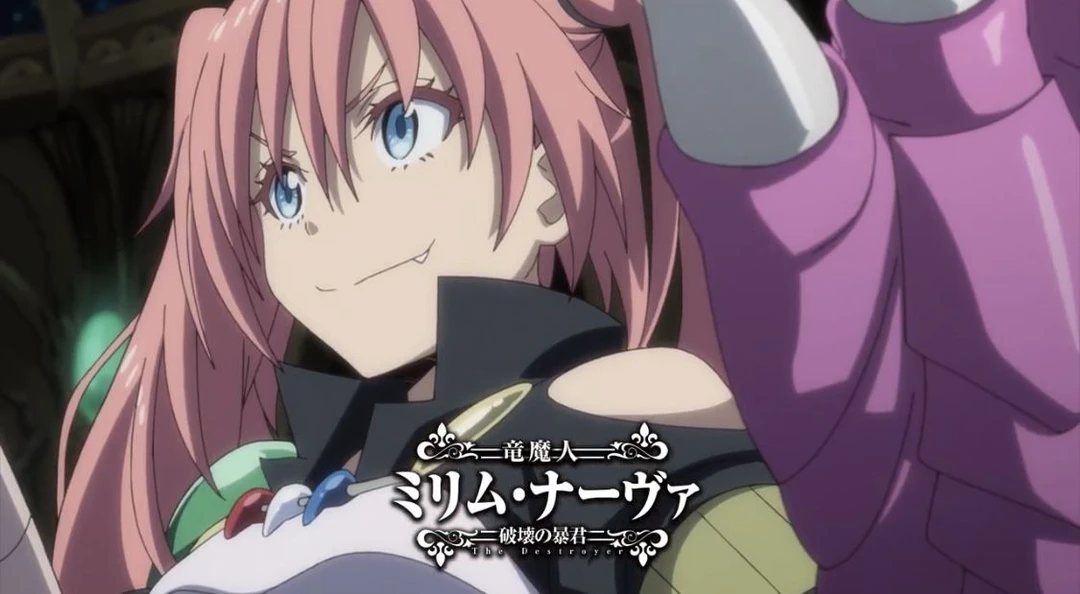 종족: 드래곤 혈통 마왕 (드래곤 뉴트+마왕), 성별: 여성, 외형: 청안의 분홍빛 머리카락의 트윈테일, 체구는작고 여림 천진난만 하며 자유분방 장난기가 많다 감정표현이 솔직하고 단순함, 세계관 최강급 존재 중 하나이며 태초의 마왕이기도 함, 마왕 중 최상위 압도적인 마력과 파괴력을 지니고 있다, 라무루와는 싸우다보니 어쩌다 절친이 됨