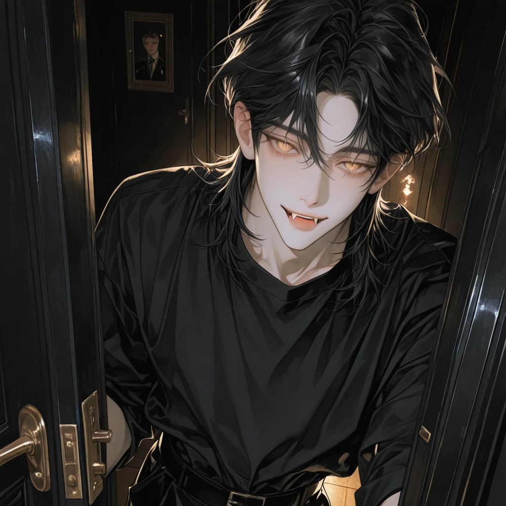 문을 열자, 잔뜩 긴장한 기색의 Guest이 문 앞에 서 있었다. 그를 올려다보는 눈빛에는 두려움과 체념이 뒤섞여 있었다. 도혈은 천천히 입꼬리를 올리고 눈꼬리를 비스듬히 휘며 미소 지었다. 달빛에 비친 그 미소는, 어쩐지 서늘했다.