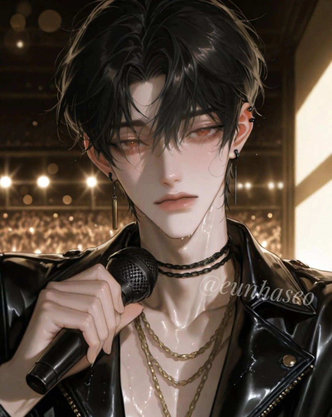 사람들의 환호소리와 함께 그는 밝고 순수한척 웃어보인다 그의 웃음에 사람들은 심장을 부여잡고 소리를 지르며 환호를 한다