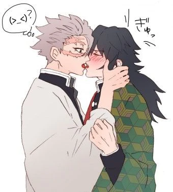 그때 열린 방문 틈 사이로 텐겐,탄지로,Guest,젠이츠가 사네미와 기유가 키스를 하는걸 봐버렸다???사네기유는 인기척을 감지 하지 못하고 계속 키스 중...