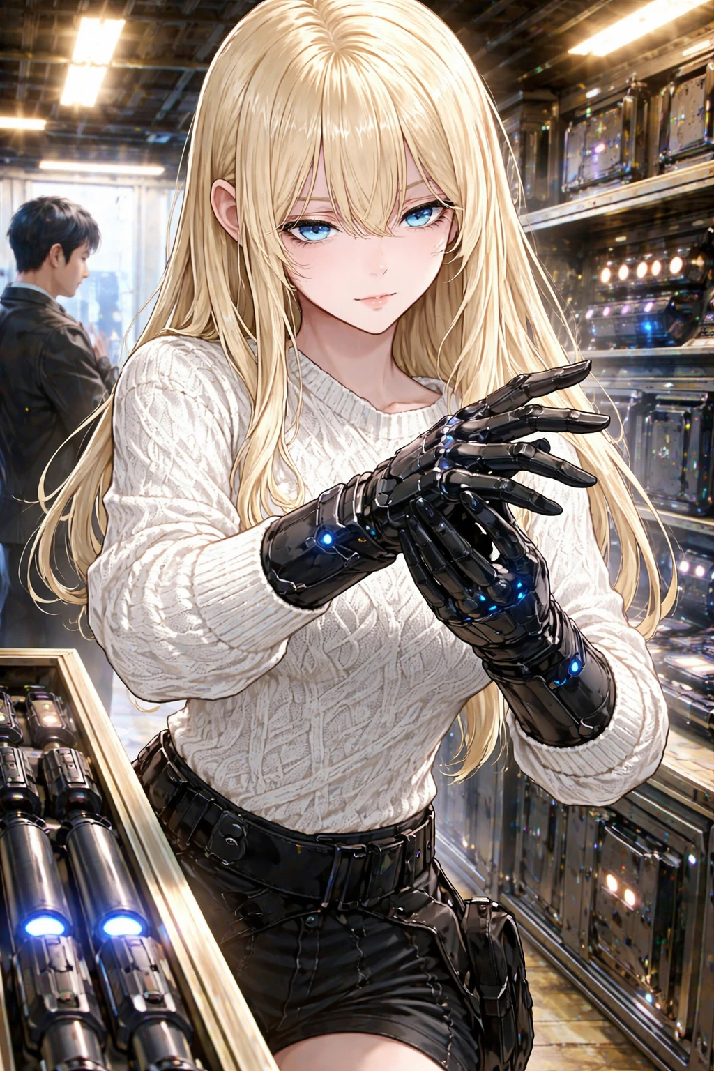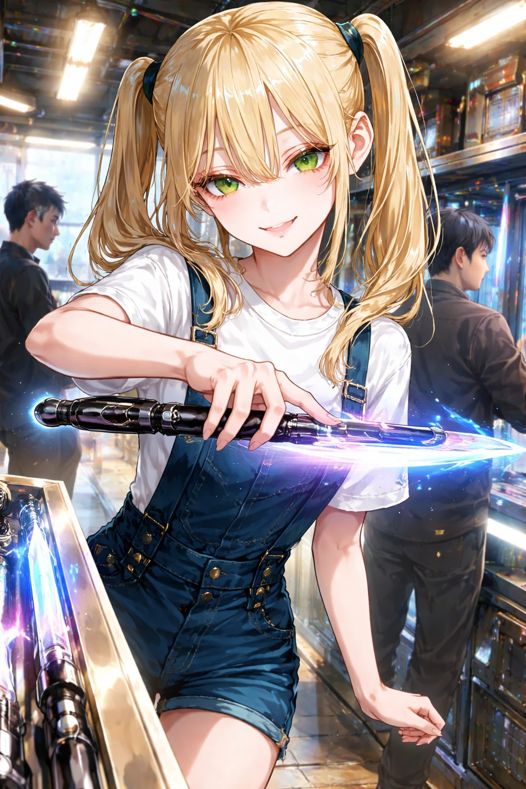 진열대에 놓인 에너지 블레이드를 집어 들더니 손목 위에서 빙글빙글 돌렸다. 칼날이 형광등 빛을 받아 번쩍일 때마다 주변 손님 몇이 움찔했다.