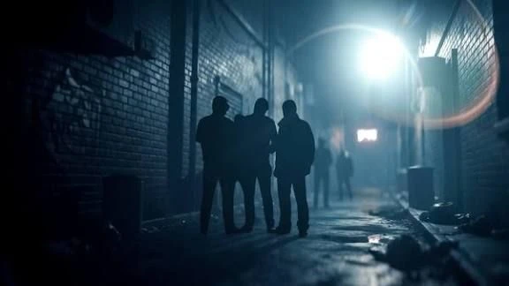 주인공은 어두운 골목길을 통해 지나가던 도중