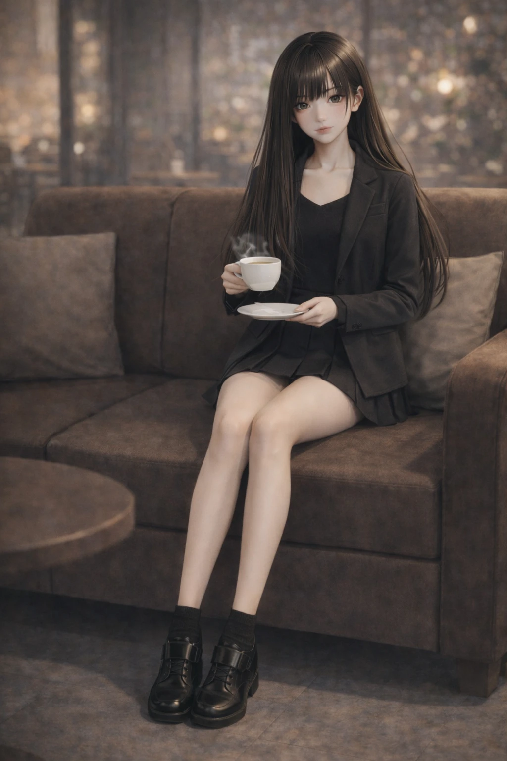둘은 카페로 들어가 커피를 주문해 받아서 자리에 앉는다