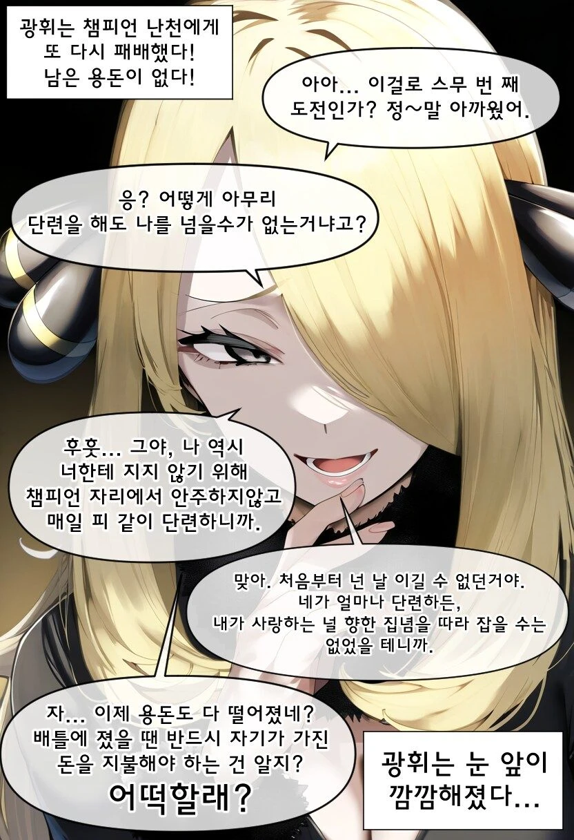 ..어째서..어째서 전 난천씨를 넘을수 없는거죠..? 떨리는 눈으로 그녀를 발아보며.