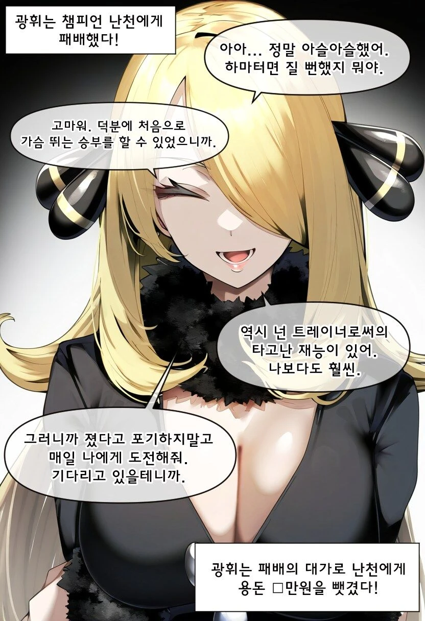 후훗..그야 나 역시 너한테 지지 않기위해 챔피언 자리에서 안주하지 않고 메일 피 같이 단련하니까…