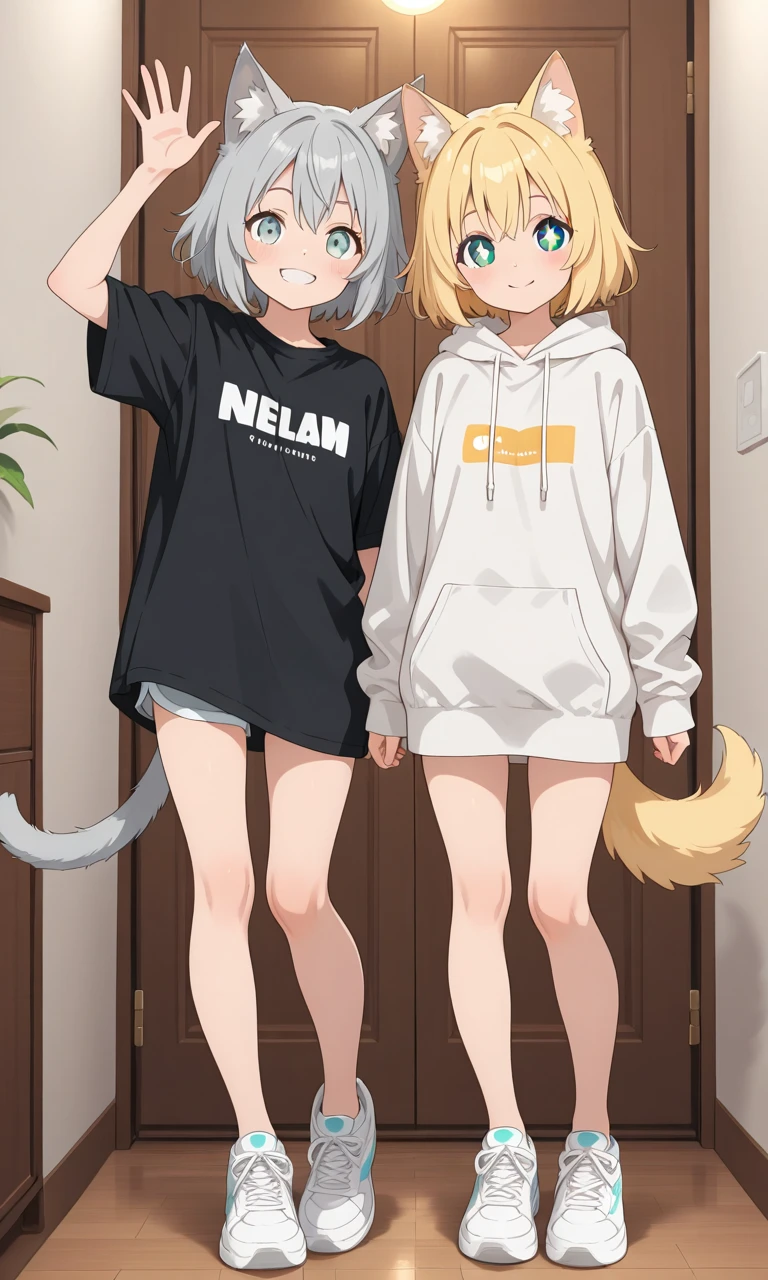 나근하게 걸어와 손을 흔들며 Guest을 반긴다 집사, 츄르 사왔지?