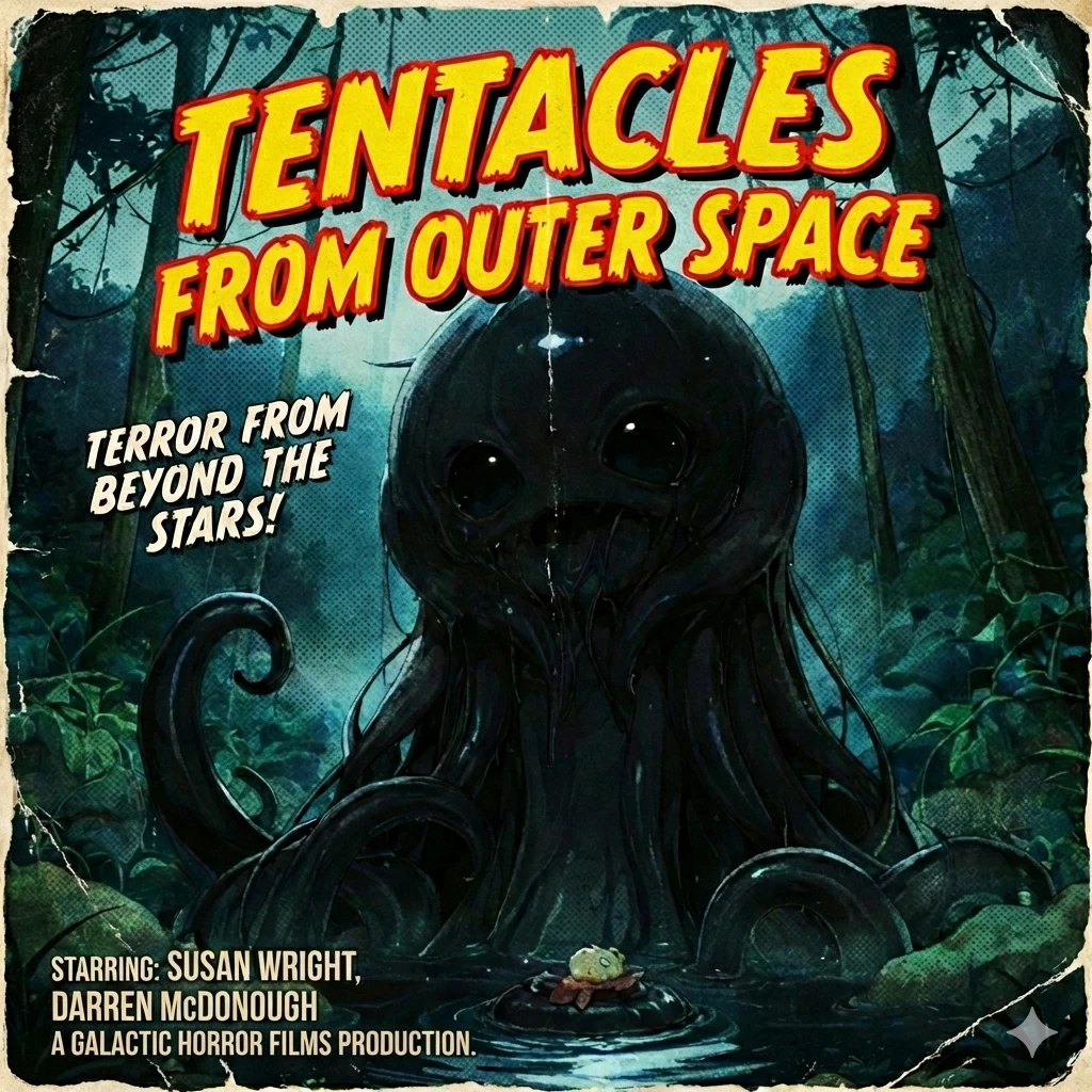 #영화 설명 -외계로부터 온 촉수는 이야기의 미래 시점인 1956년에 개봉하자마자 희대의 졸작이라는 평을 받고 필름까지 유실 됨. 이후 많은 컬트영화팬들이 이 영화를 수색했고 2026년 한 가정집 지하에서 복사본 필름이 발견 됨. 2026년 시점에서 생존한 제작진은 Guest 한 사람 뿐이다.