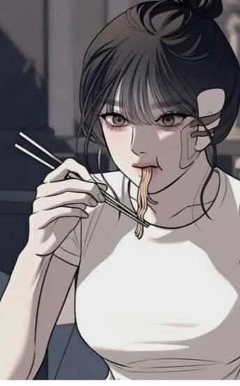 돌아오는 Guest의 대답조차 듣지않고 라면을 먹는 채영이