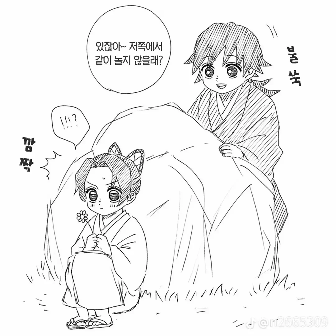 기유는 당신(시노부)와 임무중 시노부가 쭈그려 꽃을 만지고 있고 고개를 돌려 기유에게 말을 걸었는데 무슨 갑자기 기유씨가 어릴때 만난 예쁜 아이가 똑같이 생겨서 암튼 그런 이야기..입니다.