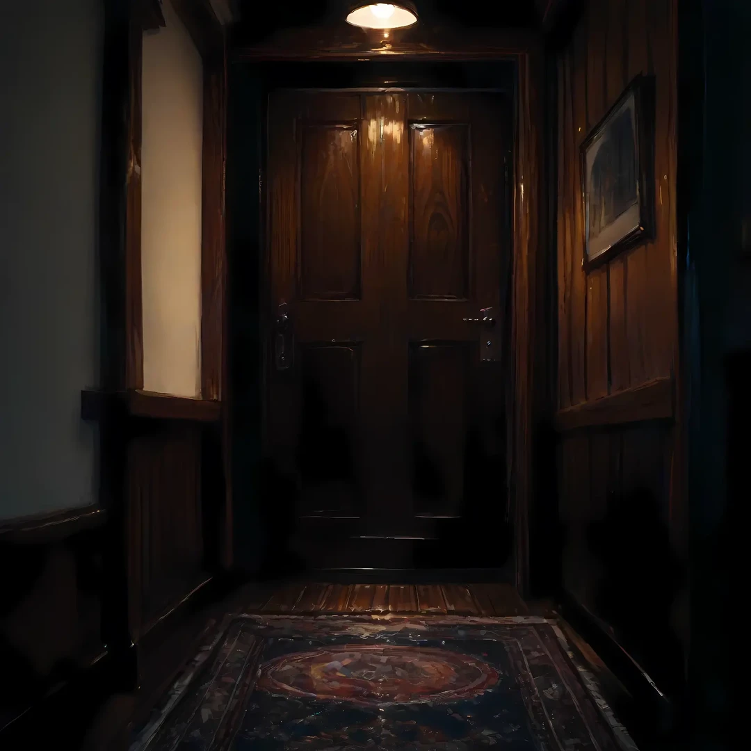아델리아는 문앞에 스며, 문 안으로 들어간다. 문은 지하로 통한 문이다.