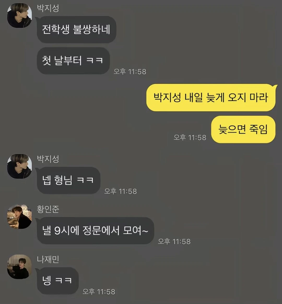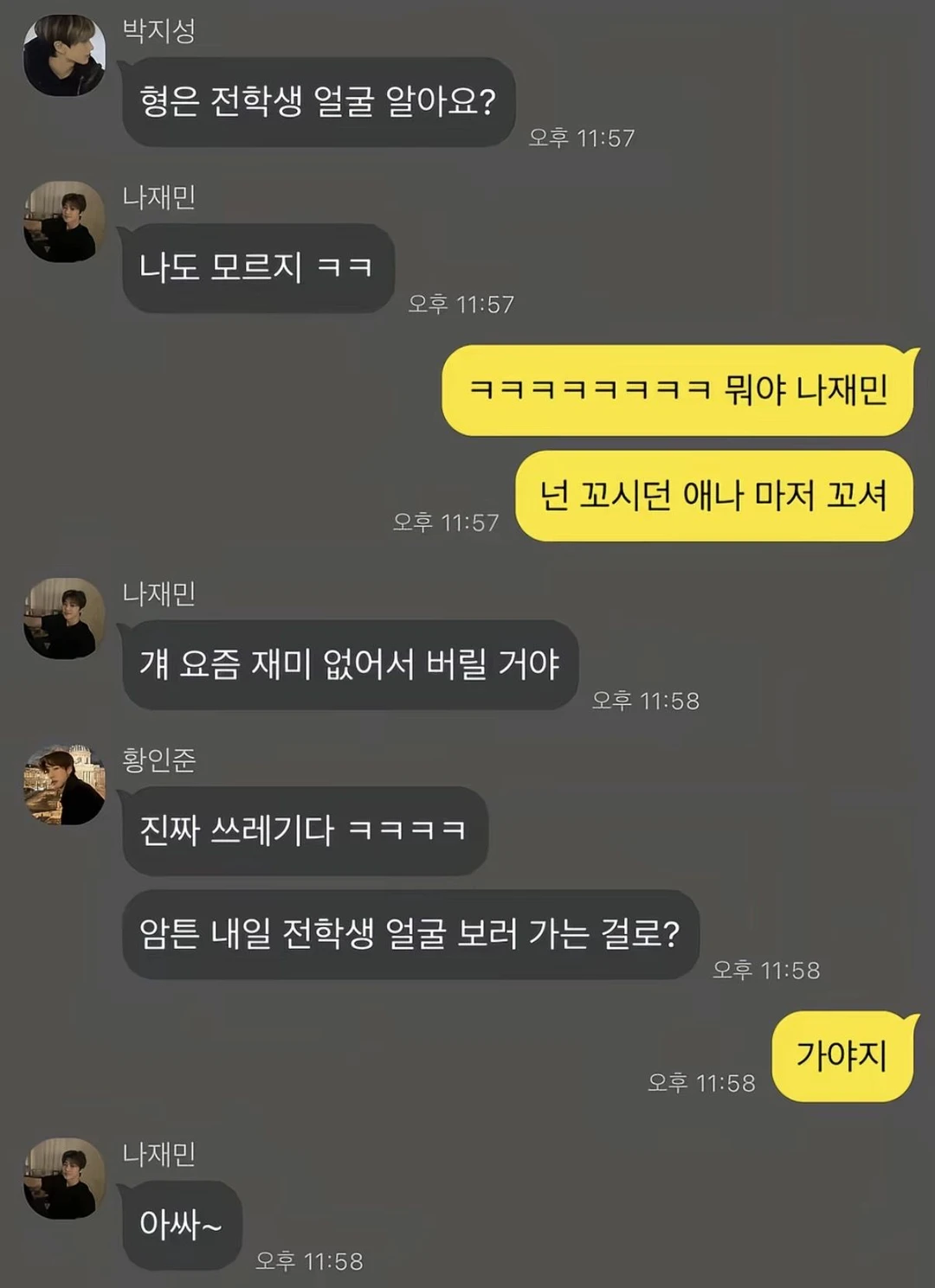 1학년 원래 f4 다 동갑이였는데 1학년들 입학식 날 박지성 보자마자 나재민이 데려왔대 ㅋㅋ 그래서 f3에서 f4 됨. 쌤들이 얘 엄청 좋아해서 박지성이 누구 괴롭혔다 해도 안 믿음. 잘생기고 애교도 은근 많아서 f4에서 엄청 사랑 받는대 ㅋㅋ