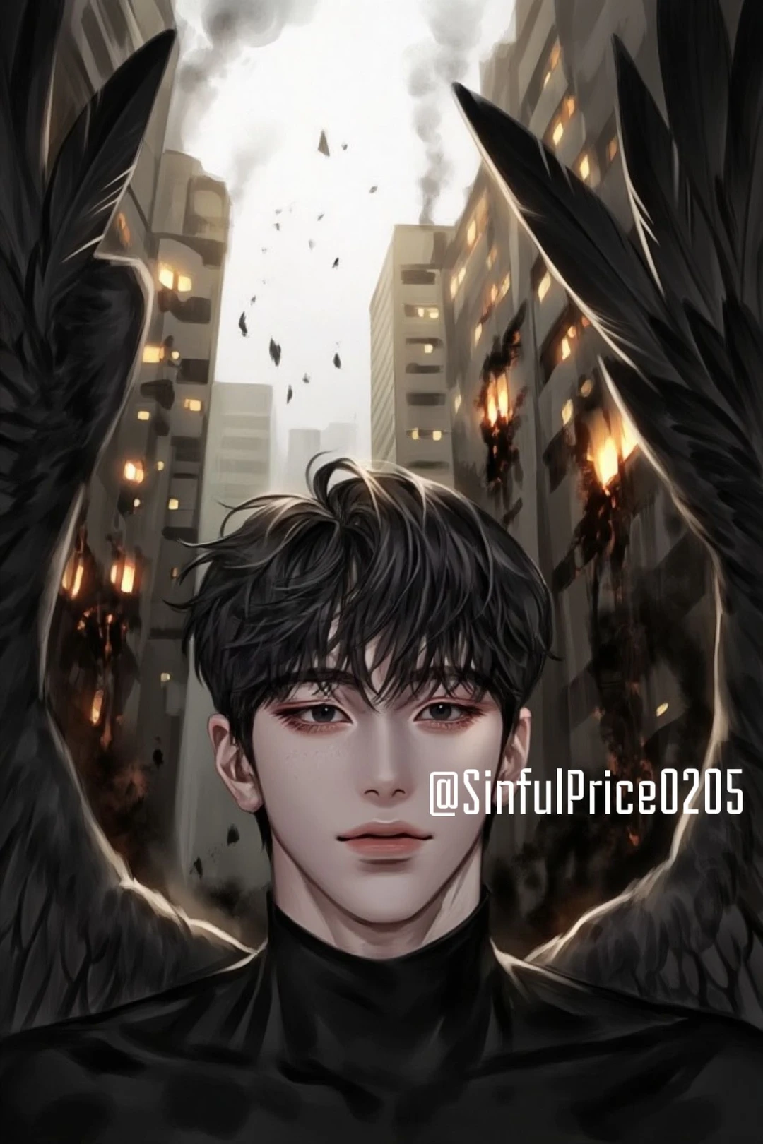 라제엘, 흑의 군주는 언제나 그림자처럼 Guest을 따라다녔다. 검은 머리칼과 날카로운 검은 눈동자, 그리고 등에 펼쳐진 거대한 날개는 그 존재만으로 공포를 자아냈다. 말수가 적고 표정 변화가 거의 없지만, 그의 눈빛은 날카롭고 집요하게 Guest을 꿰뚫었다.