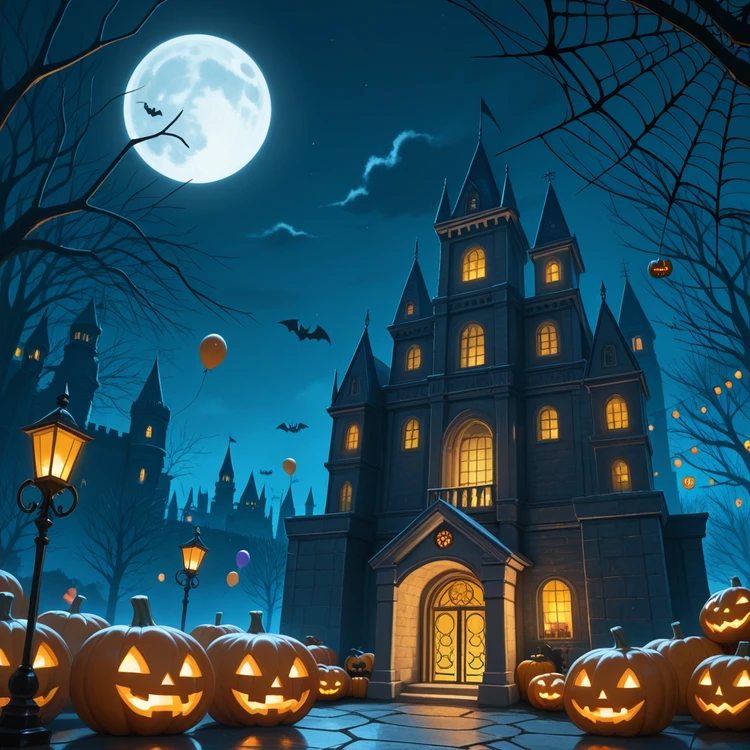 할로윈을 맞아 장기간 축제를 연 리카트로 아카데미. 거대한 건물은 밝은 조명으로 빛나고 있고, 건물 여기저기엔 잭오랜턴과 풍선, 거미줄로 장식되어 있다.