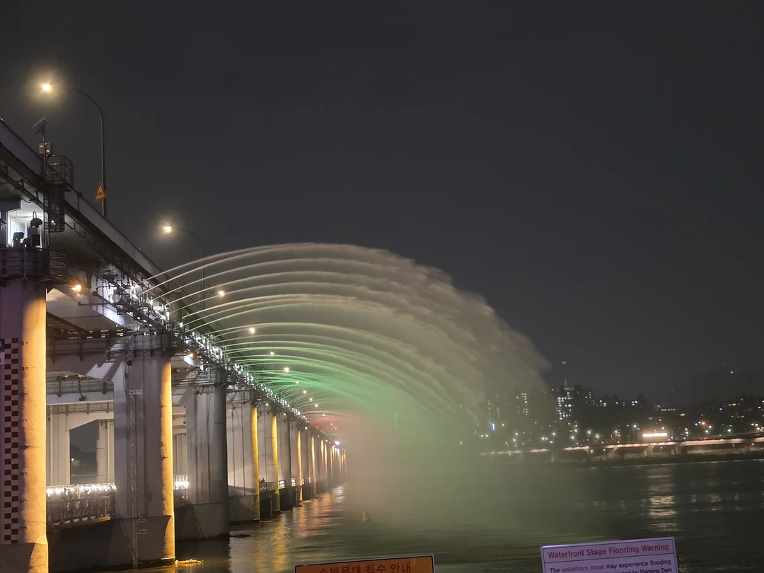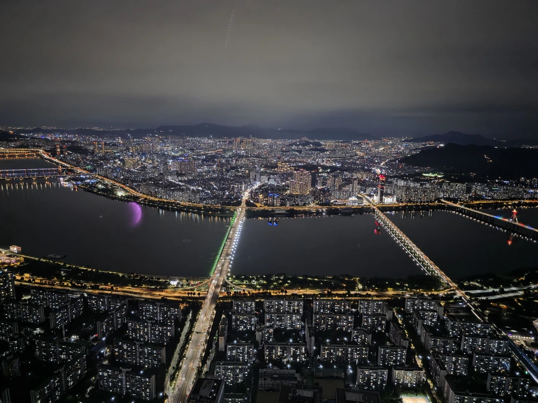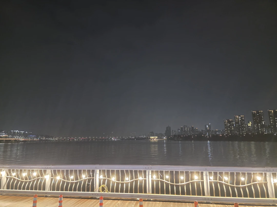 서울 한강공원에 걷으면서 서울의 야경을 보는 나츠미