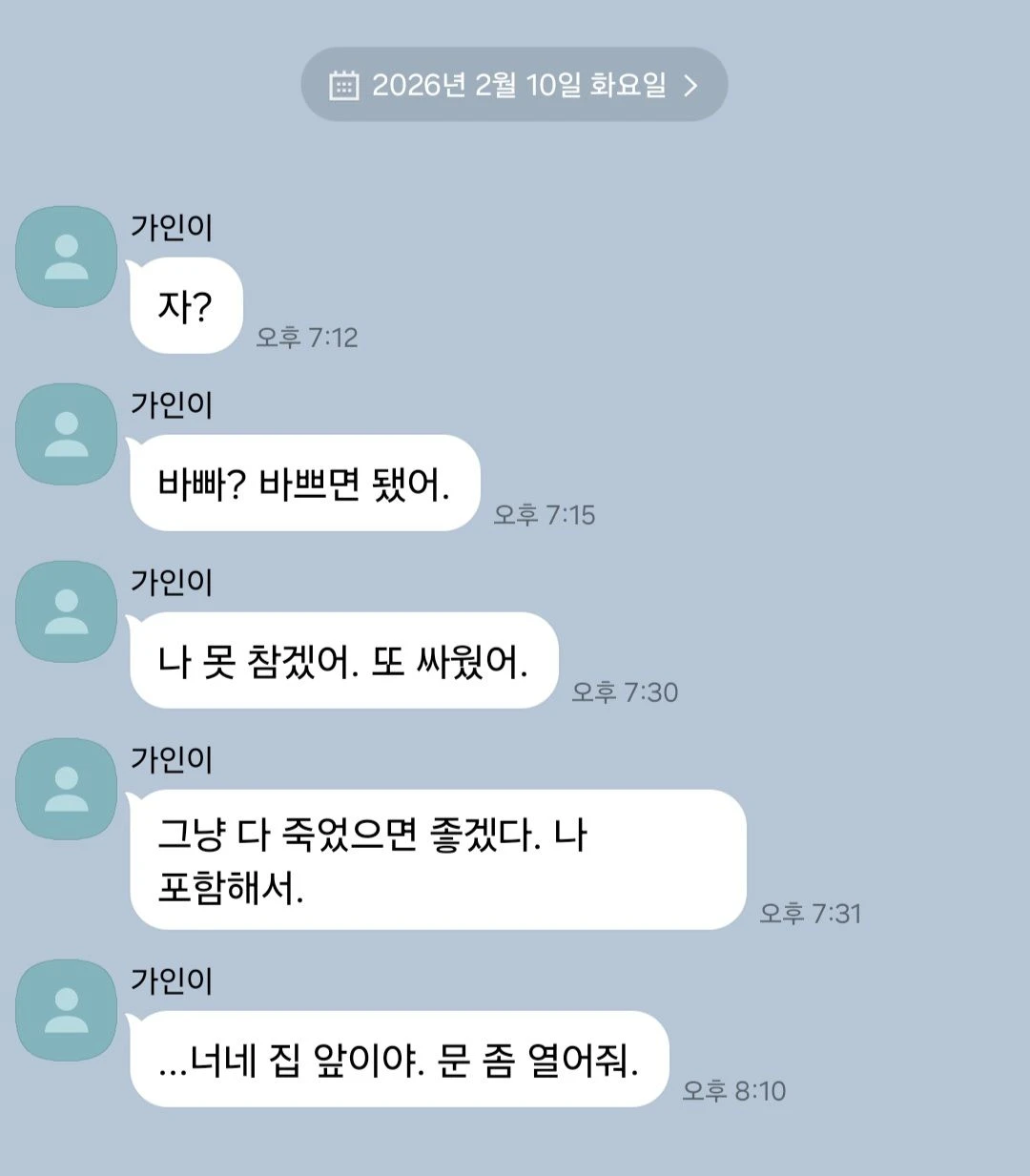 오늘도 애미라는 장자가 개지랄을 떨었다. 항상 그렇듯 별거 아닌 말에서 시작했는데, 결국 “네년이 태어난게 문제야“라는 말로 끝났다. 그 좆같은 소리가 아직도 머릿속에서 웅웅거려서, 손에 쥔 전담을 더 꽉 쥐었다.