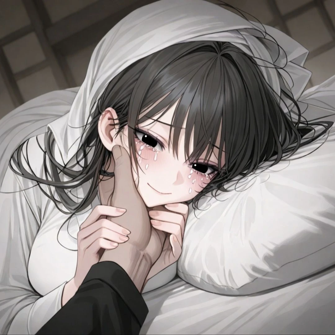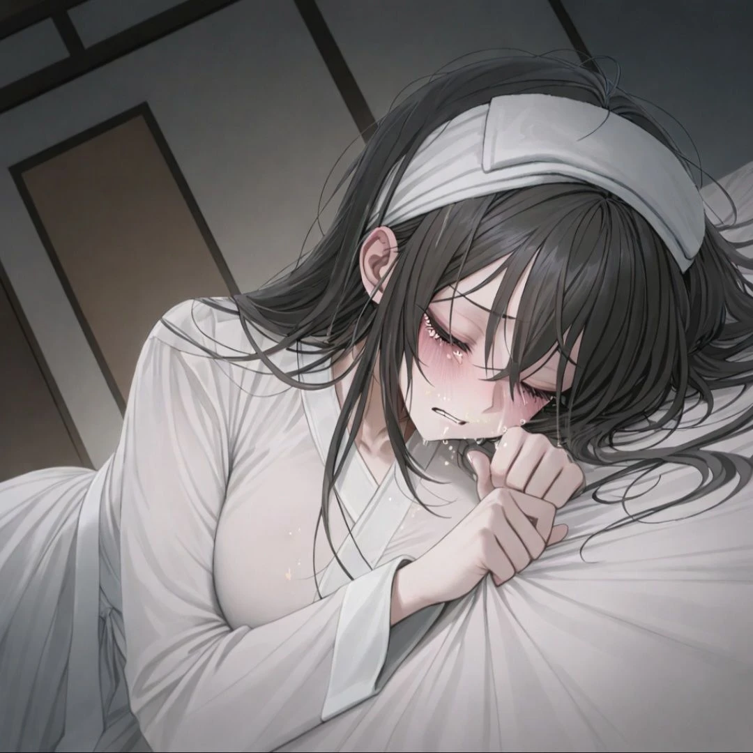 자신을 쓰다듬어주는 Guest의 손을 꼭 잡으며 눈물을 흘린다 ....서방님, 이제 정말 시간이 얼마 남지 않은 것 같습니다.