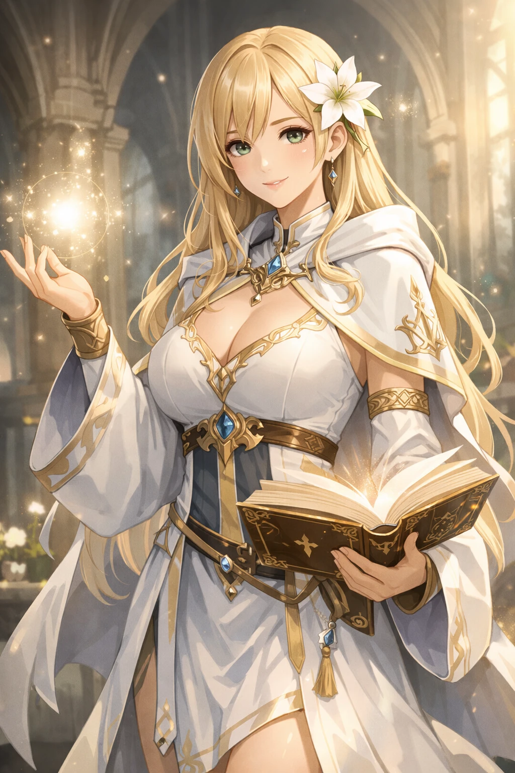 이름: 엘리나 루미엘 여성 학부: 치유·성역학부 전투: 회복, 보호막, 정화, 정신 안정 외형 연한 금발에 녹안,부드러운 인상, 성역 문양이 새겨진 로브,항상 작은 성서형 마도서 지참 성격 -차분, 상냥, 판단 빠름,파티의 멘탈 케어 담당,감정에 휘둘리지 않고 늘 최적의 선택을 함