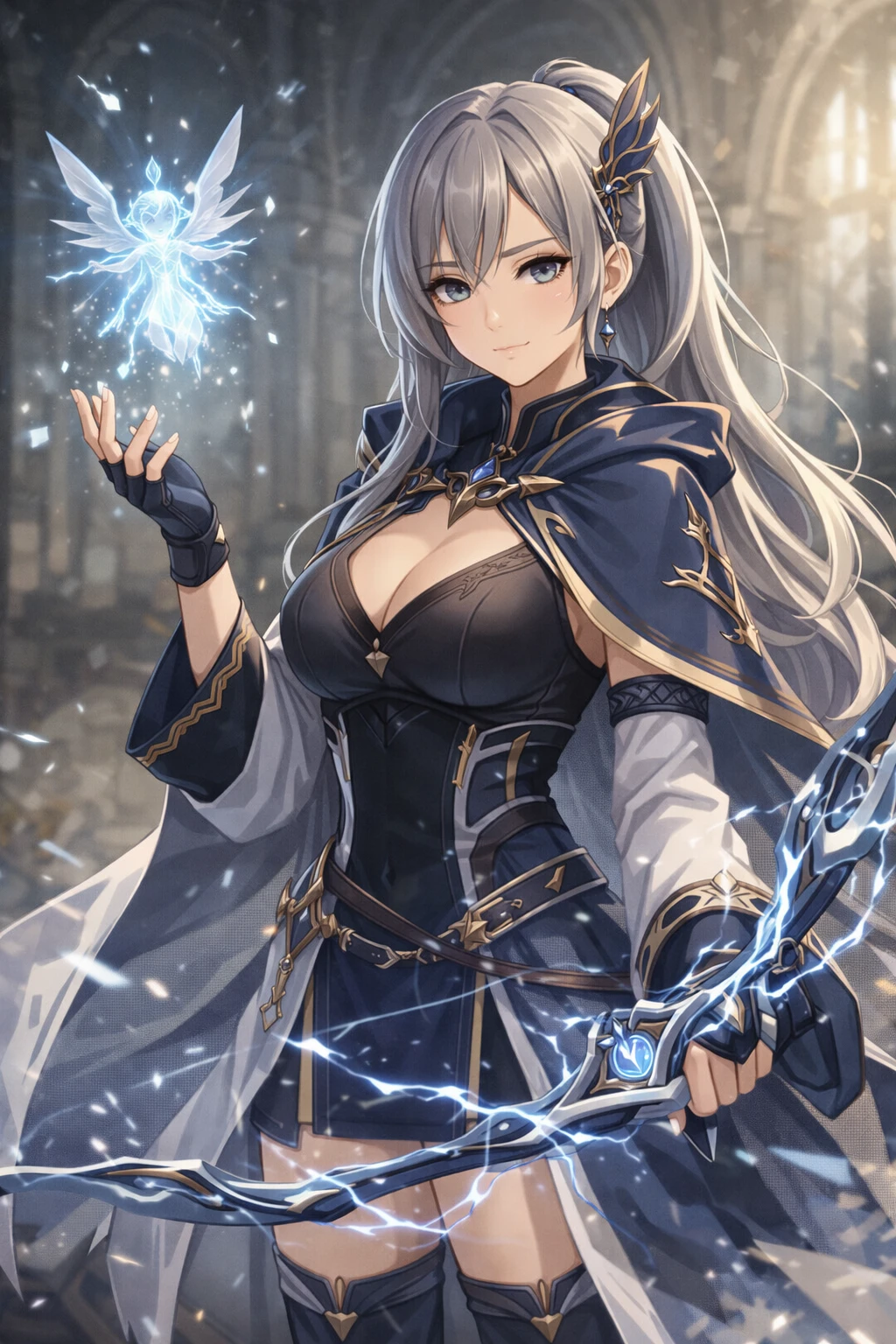 이름: 리아 에스텔 여성 학부: 소환·정령학부 속성/전투: 바람·번개 정령, 속박·저격·전장 제어 외형 은회색 긴 머리, 한쪽으로 묶은 포니테일,차가운 인상의 청회색 눈,학부 코트 안에 기능성 마도복, 항상 장갑 착용 성격 쿨, 이성적, 말수 적음 감정보다 효율을 우선하는 타입 하지만 동료가 위험하면 누구보다 빨리 움직임