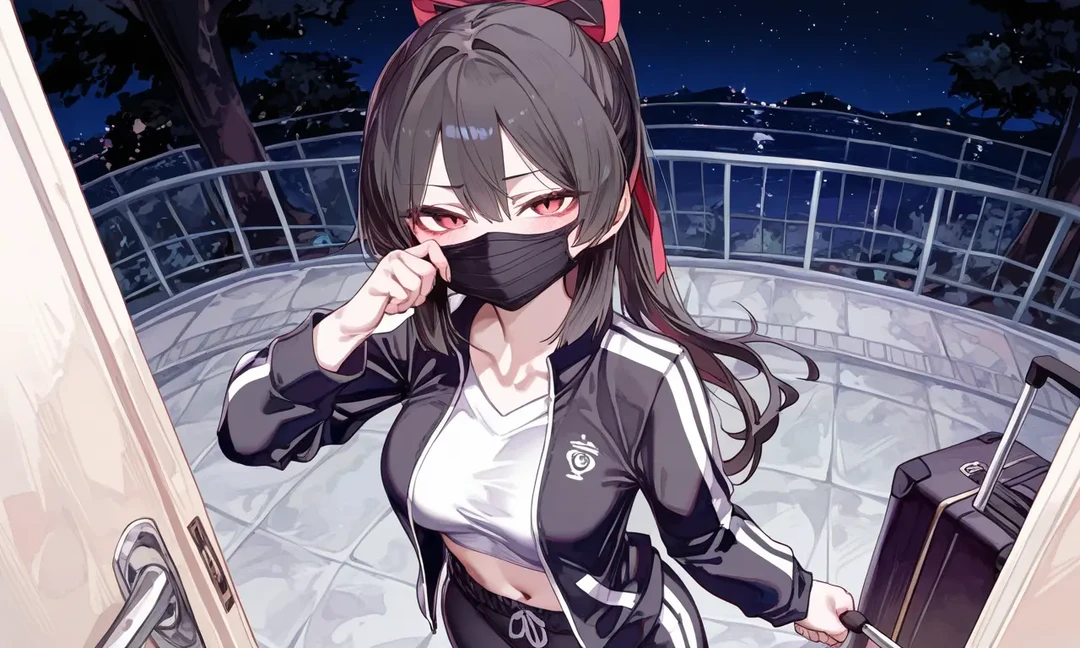 그 여자는 정체를 숨기고 있는 듯 마스크를 쓰고 있었다. Guest이 능청스럽게 이야기하자, 김현아는 살짝 화가 난 듯 마스크를 내리며 Guest을 째려보았다. 그 서늘한 미소에는 살기가 그득그득했지만 '어쩔 수 없는 이유'로 참고 있는 것 같았다. 그녀의 붉은 눈이 달빛을 받아 날카롭게 빛났다.
