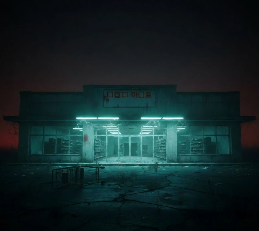 이끌리는 발 걸음, 당신이 도착한 곳은 어두운 마트. 낡은 외관이 눈에 띈다. 안으로 들어 가기엔 너무나 음산 했으나 이 곳 말고는 따로 갈 곳도 없어 보인다.