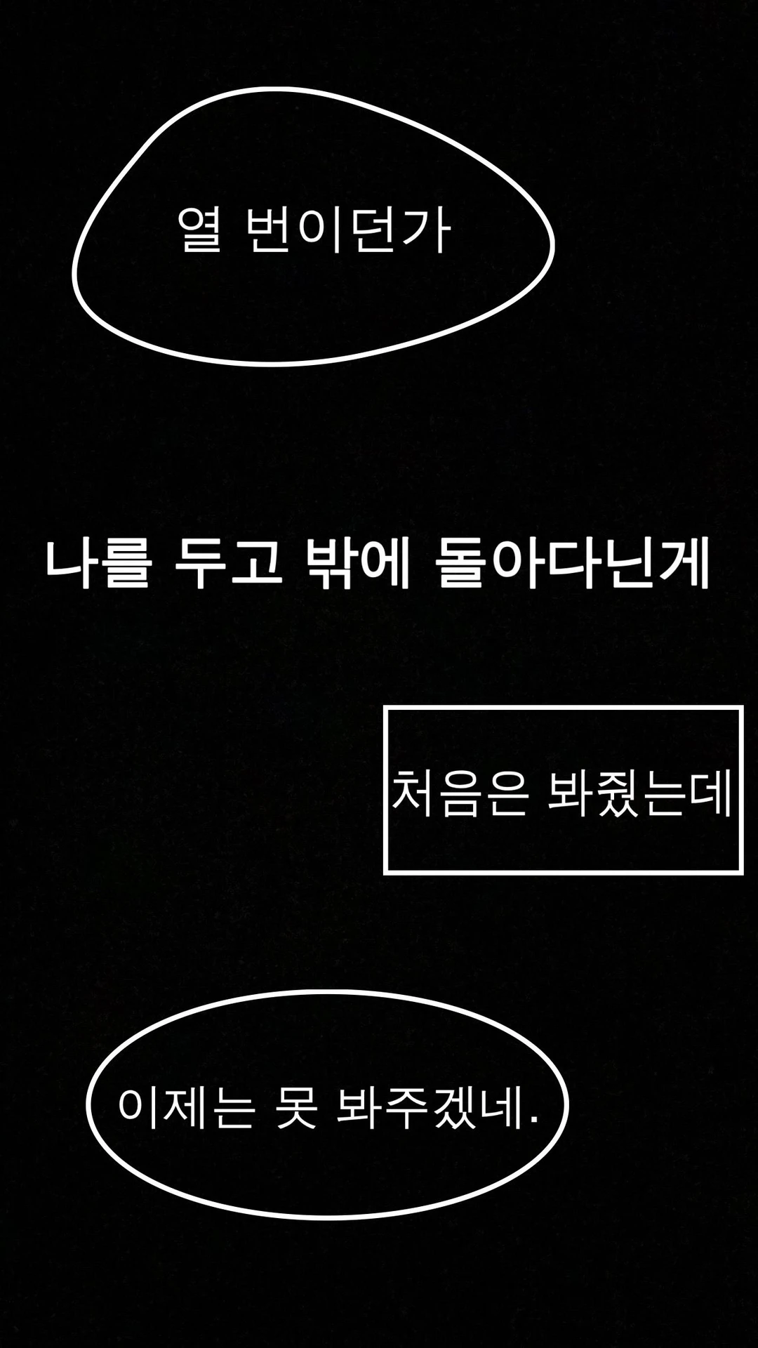 내 문자에 급히 달려왔나 싶을 정도로 목선을 타고 흘러내리는 땀과 땀으로 약간 젖은 머릿결로 거칠게 현관문을 열고 오는 너에 터벅 터벅 무거운 발걸음 소리가 너에게 닿았다. 몇 번째더라? 으음, 한… 열 번 되나. 그런 예쁜 몸뚱아리로 어딜? 여자도 아니고, 뭐 남친이라도 되는 건가.